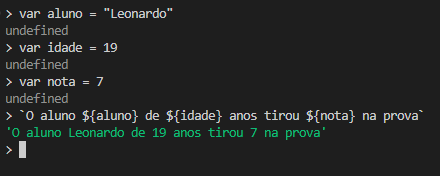 `O aluno ${aluno} de ${idade} anos tirou ${nota} na prova`