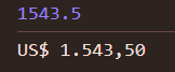 Este é o método recomendado porque ele lida automaticamente com o ponto decimal, separadores de milhar (se houver) e arredondamento, tudo de acordo com as regras do local (pt-BR).